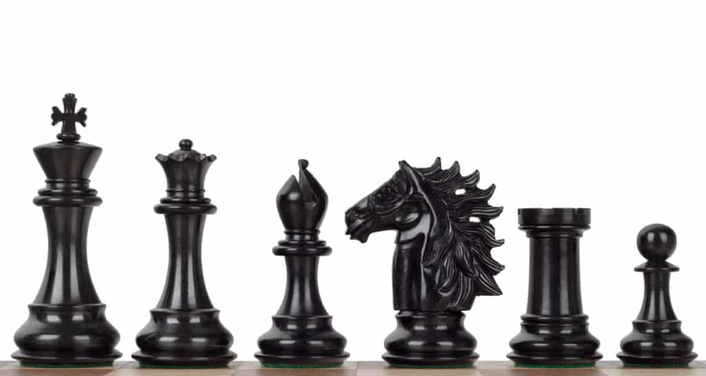 De manen van het paard brengen het stuk en haar omgeving tot leven. Hoewel het paard in de schijnwerpers staat, zijn de andere stukken ook prachtig. Met vaardigheid en liefde gesneden, behoort de Baggio tot de beste schaakstukkensets die beschikbaar zijn in de schaakwereld. Royaal geproportioneerd en voelt geweldig aan om vast te houden, een genot om te bezitten. Gemaakt van zeldzaam (maar ethisch geproduceerd) ebbenhout van de hoogste kwaliteit, met dubbele dames, drievoudig verzwaard en voorzien van vilten bodems.