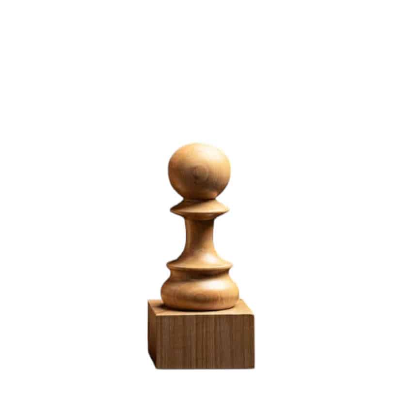 Deze mooie schaaktrofee (pion) is gemaakt van hout. De trofee kan gepersonaliseerd worden met een gegraveerd plaatje. Een zeer leuke prijs om te winnen na een toernooi. Organiseer jij binnenkort een schaaktoernooi? Dan is dit een hele mooie prijs. Eventueel ook te gebruiken als wisselbeker.