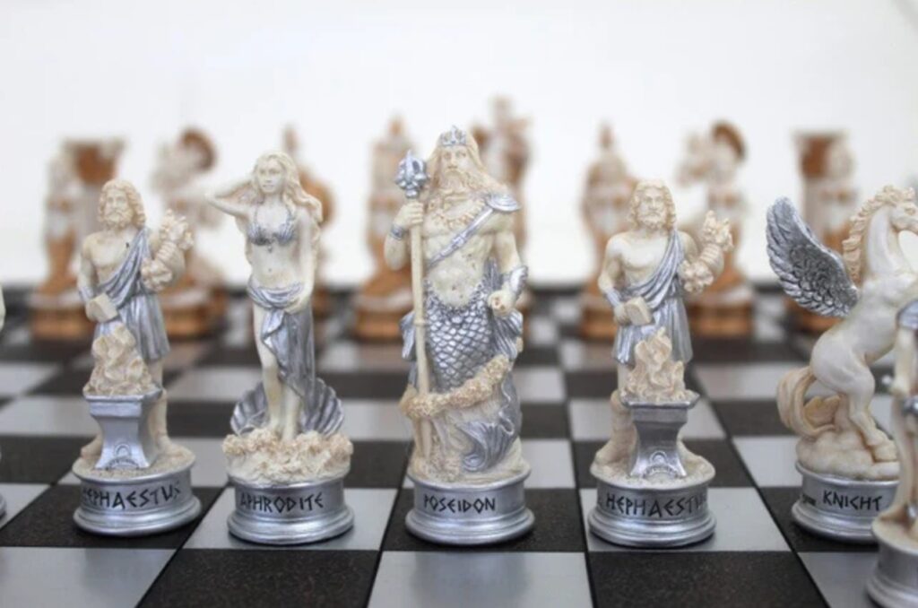 Griekse Mythologie - Handbeschilderde Luxe Schaakset