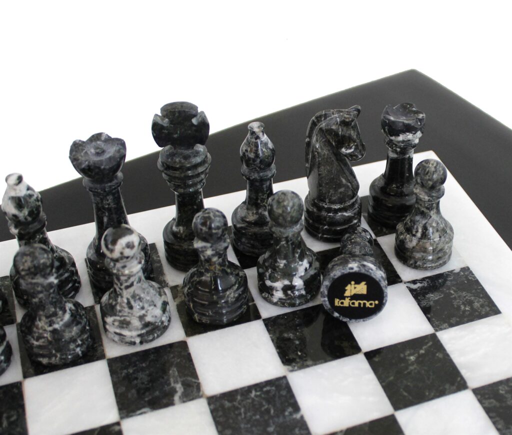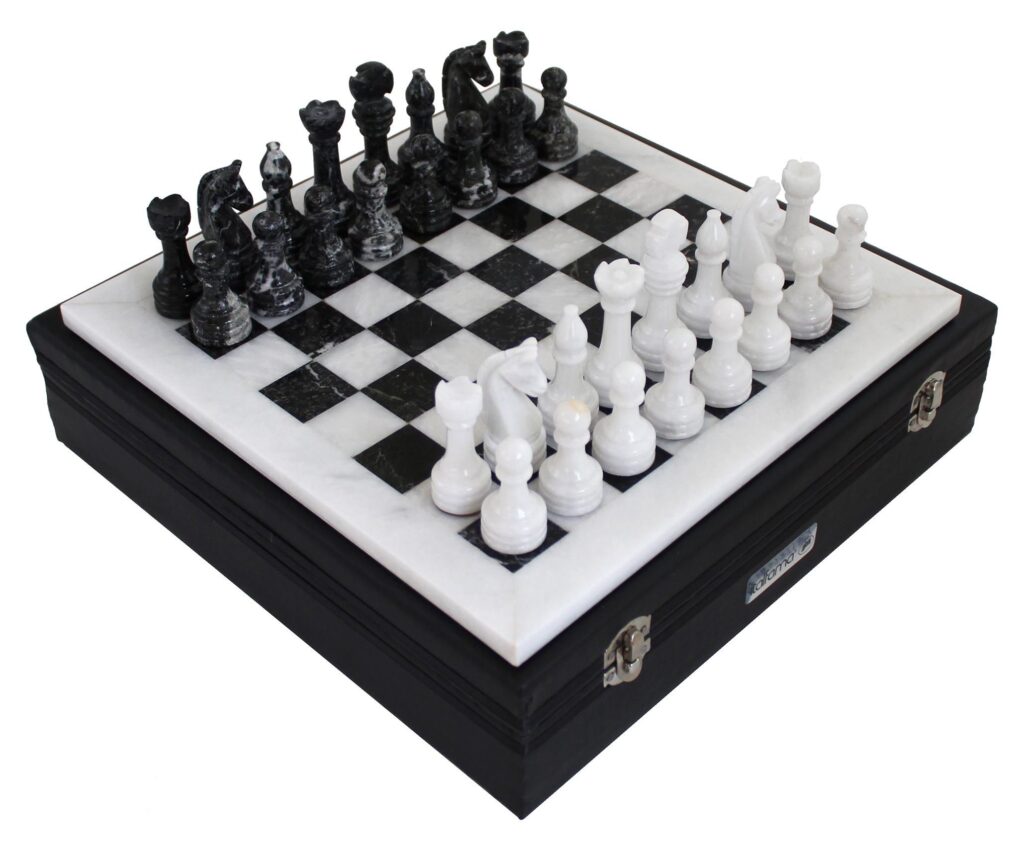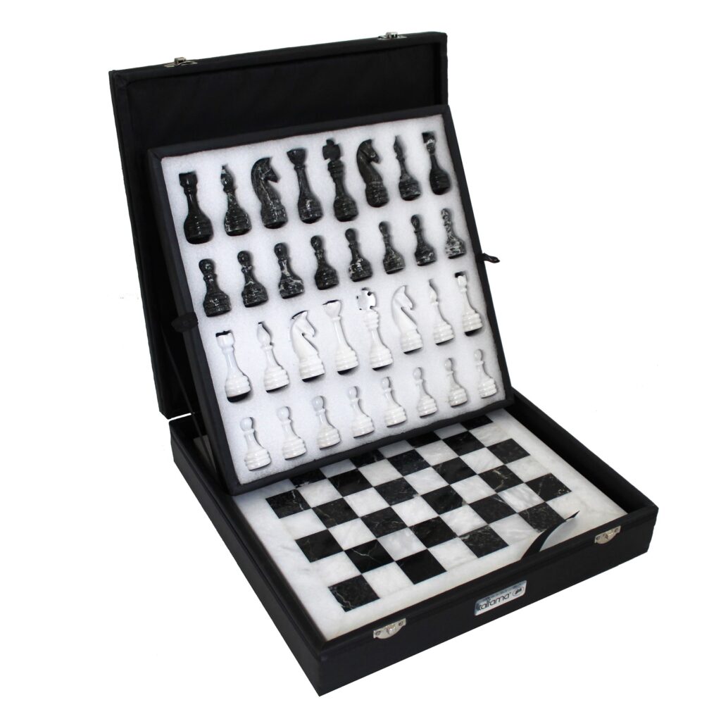 Handgesneden Marmeren Schaakset - Zwart & Wit