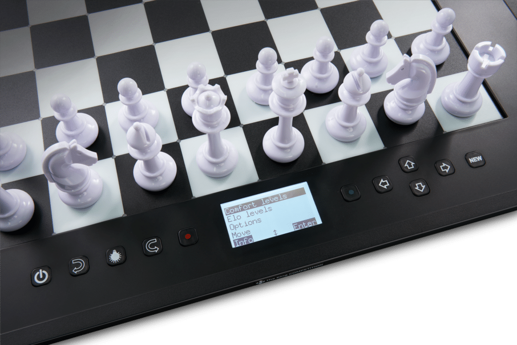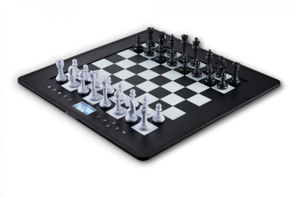 Het universele genie onder de schaakcomputers. Met The King, Chess960, online schaak, adaptieve speellevels. Zetten van uw tegenstander worden door middel van 81 led's direct op het bord weergegeven.