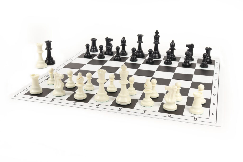 Toernooi schaakset met plastic bord zwart/wit inklapbaar + verzwaarde plastic stukkenStaunton Maat: 6