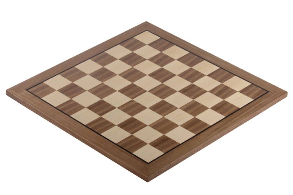 Prachtig schaakbord van Walnoot en Esdoorn hout. Het bord heeft een rustige uitstraling door het Walnoot hout. Dit is prettig tijdens het spelen, zodat je uren lang op het bord kunnen blijven spelen. Met dit bord speel je op het officiële wedstrijdformaat, waarmee gespeeld wordt op de grote toernooien.