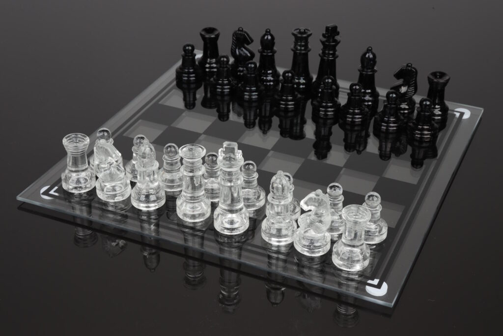 Schaakspel van glas 25 x 25 cm – stukken helder / mat