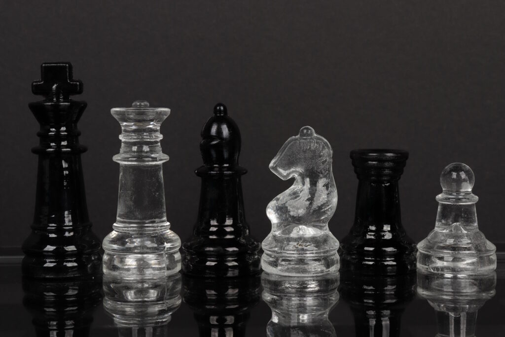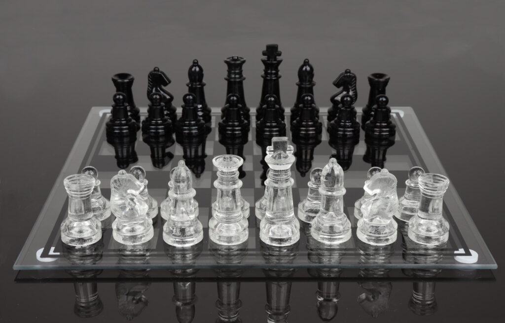 Schaakspel van glas 35 x 35 cm – stukken helder / zwart