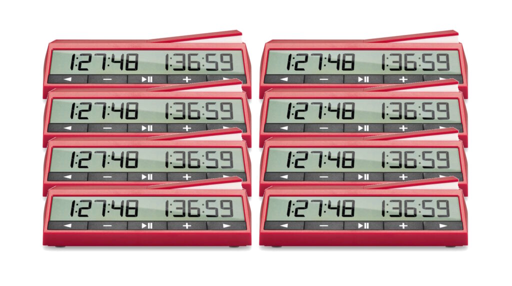 De DGT2500 schaakklok is de nieuwe standaard binnen de speltimers. Deze klok is de nieuwe officiële FIDE schaakklok sinds 2023. Het is de opvolger van de DGT2010. Dit is een voordeelset van 8 stuks!