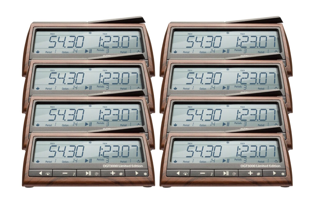Om de 25ste verjaardag van DGT te vieren, is er een Limited Edition van de DGT 3000 Schaakklok op de markt gebracht. Dit is een voordeelpakket van 8 stuks!